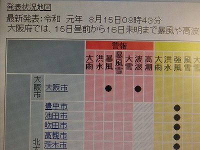 これから台風が上陸、大阪にも最接近し、風雨が強まります。