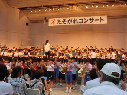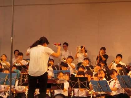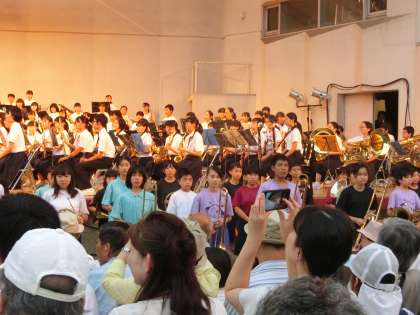 3・2年生は舞台上で、ところ狭しと演奏し、1年生は舞台下での演奏となりました。