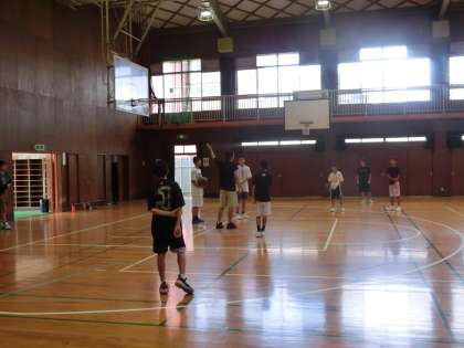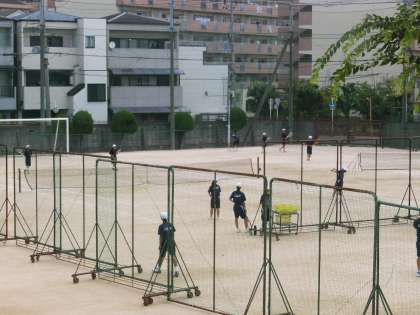 早朝から、野球部、テニス部、バスケット部が試合へ向かいました。
