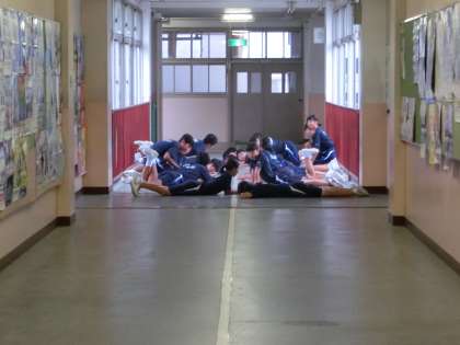 午後からの激しい雨のため、グラウンドは使えず・・・。