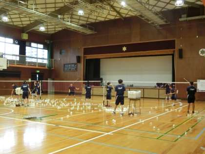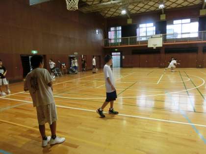 体育館では、男子バスケット部とバドミントン部が活動しています。