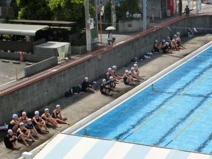 青々としたプールが、みんなの歓声で輝きを放っています!