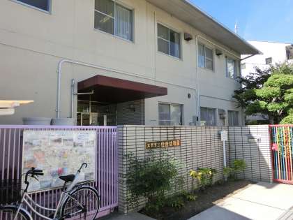 3名の女子生徒が、園児さんと一緒に楽しく遊んでいました。