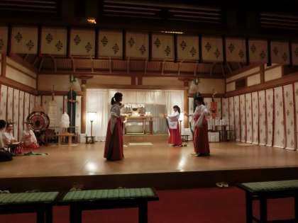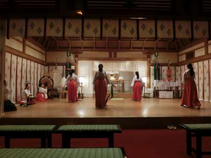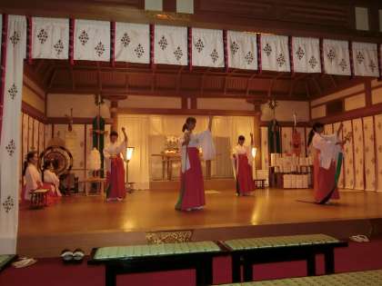 住吉大社内の「神楽殿」で練習を重ねています。