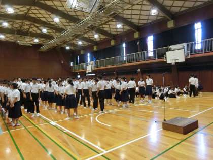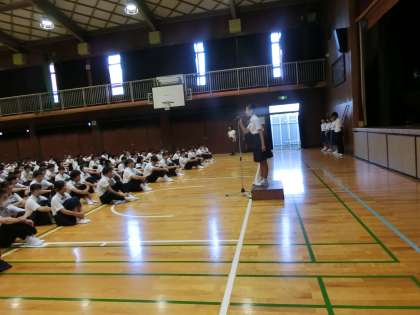 一週間の始まり。本日も体育館で全校集会を行いました。
