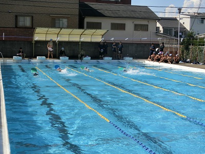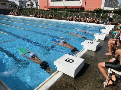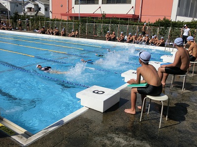 先日の水泳大会が、雷雨のために中断されたので、本日6限から、その続きが行われました。