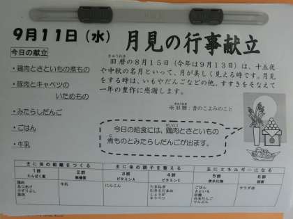 本日のメニューは、週末の十五夜にちなんで「月見献立」です。