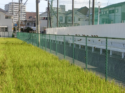 今朝は、スズメたちがフェンスにとまって、稲穂を眺めています。