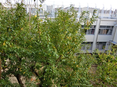 秋の訪れで、みどりの葉が黄色に色づき始めました。