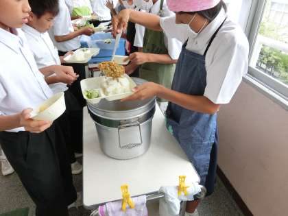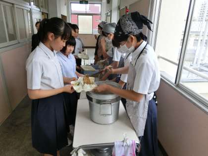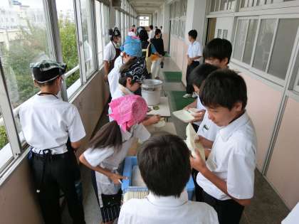 4時間目が終了し、給食の準備に入りました。