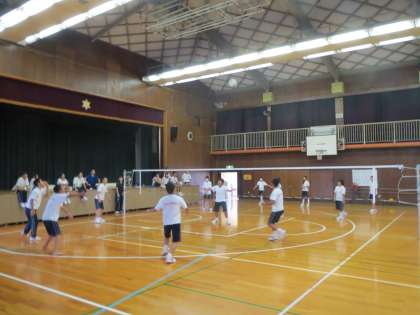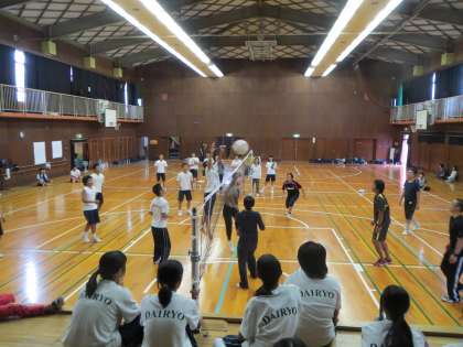 本日、土曜授業の後、午後1時より恒例の親子スポーツ大会を開催しました。今回はソフトバレーボールを実施しました。たくさんの生徒の皆さんが参加してくれました。教員や保護者の皆さんにも参加していただきました。PTAの体育厚生委員の皆様にお世話いただき生徒チームに保護者の方々も加わっていただき、生徒チーム同士の対戦とともに生徒チームと教員チームも対戦しました。決勝では3年1組男子チームが接戦の末、教員チームを下して優勝しました。大会は大変に盛り上がり、優勝チームは写真のとおり大変に喜んでいました。大会を企画・運営いただいたPTAの皆様ありがとうございました。