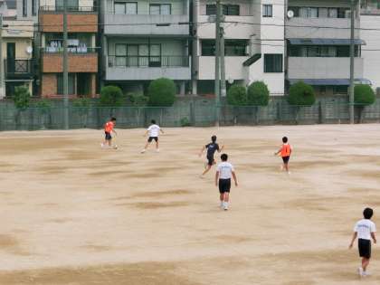 4時間目は、すぐそばのプールで水泳授業を行う予定でしたが、万一を考え中止し、グラウンドでのサッカーの授業に切り替えました。