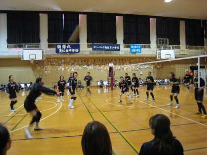 10月12日(日)大空小学校で住吉区PTAバレーボール大会予選が行われました。大領中学校は、大空小学校・墨江丘中学校の両校に快勝して、本選に進出しました。本校のPTA保護者の皆様やPTAOBの皆さんの盛んな声援を受け、チームワークよくお母さんパワーをいかんなく発揮されていました。おめでとうございます。