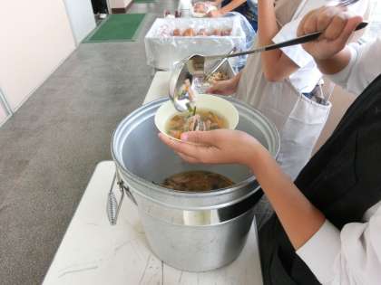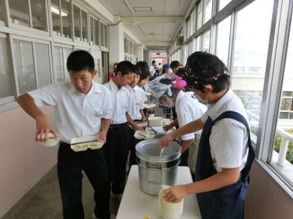 4時間目が終了し、お昼の配膳準備が始まりました。