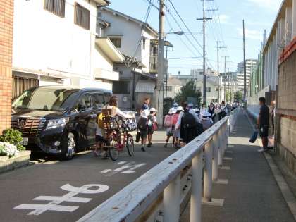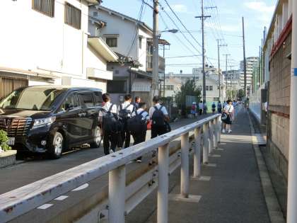 涼しい風が吹き抜ける中、今日も元気に、児童さん、生徒たちが登校してきました。