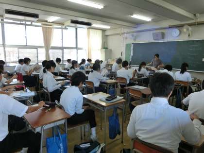 2階の教室は、涼しい風が吹き抜け、冷房なしで授業が行われています。