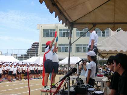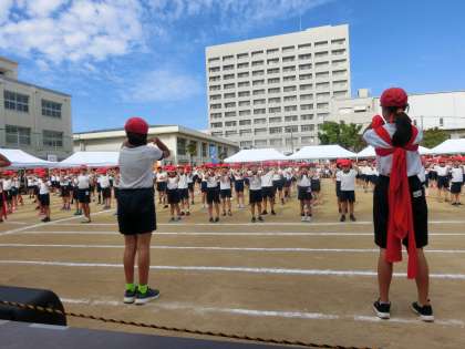 力強い選手宣誓が行われ、開会式に続いて、プログラム1番、準備運動が行われました。