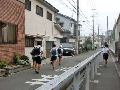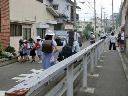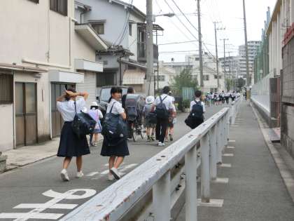 少し蒸し暑い中、児童さん、生徒たちが登校してきました。