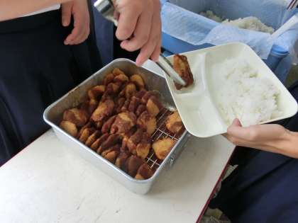 本日のメニューは、「みそカツ」「野菜の煮物」「焼き海苔」です。