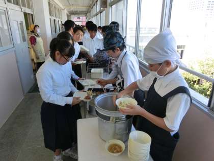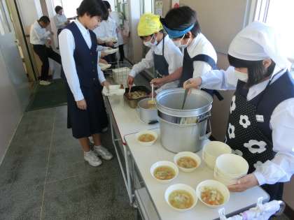 4時間目が終了し、給食の配膳作業が始まりました。