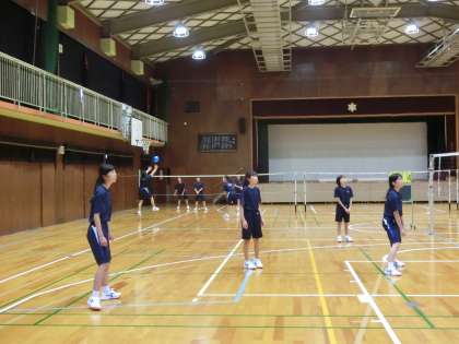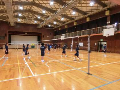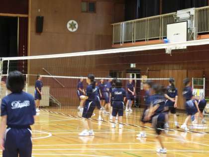 女子の体育は、体育館でバレーボールの授業です。