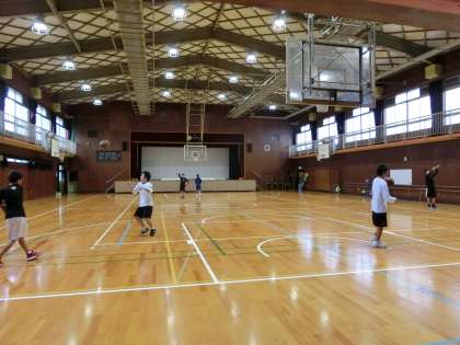 今朝もバスケットボール部が練習を行っています。