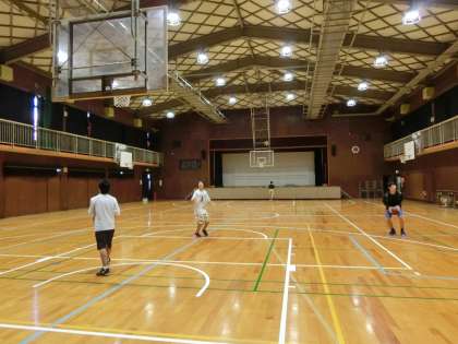 今朝もバスケットボール部が練習をしています。