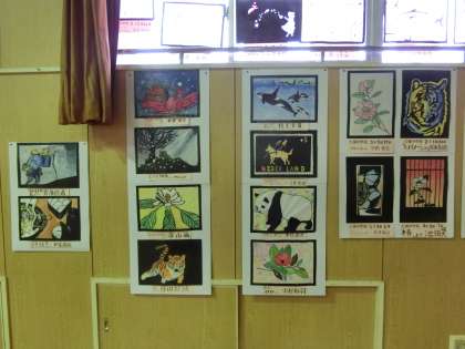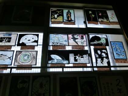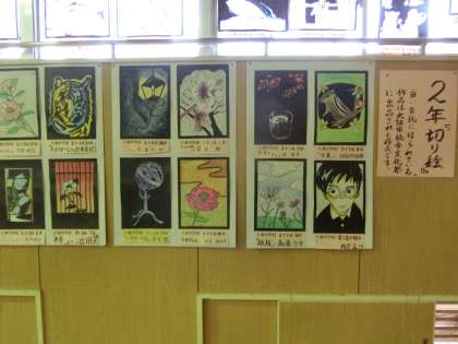 大阪市立中学校の美術展にも出品された「切り絵」が展示されています。