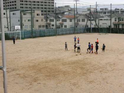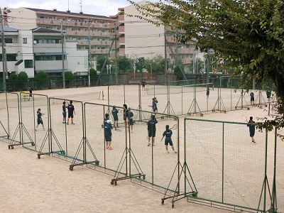 水はけの良いグラウンドでは、サッカー部、テニス部が活動しています。