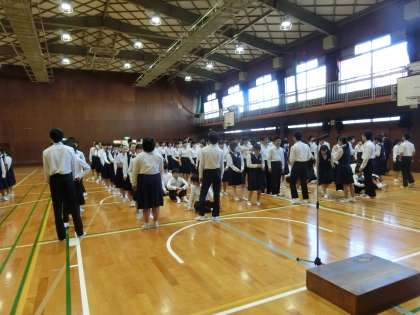 一週間の始まり。今朝も体育館で全校集会を行いました。