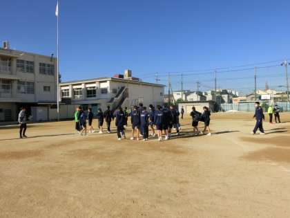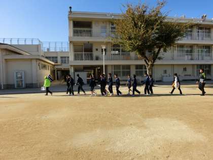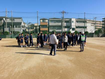 避難訓練の後、生徒たちは自宅の町会ごとに分かれます。