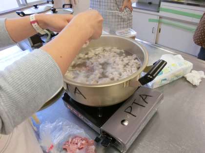 訓練から戻ってくる生徒たちのために、愛情たっぷりの豚汁が、どんどん作られていきます。