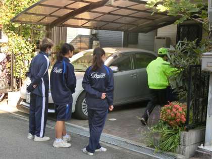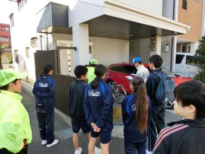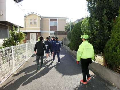 最初は、地域スタッフのご指導のもと、安否確認のため町会を回ります。