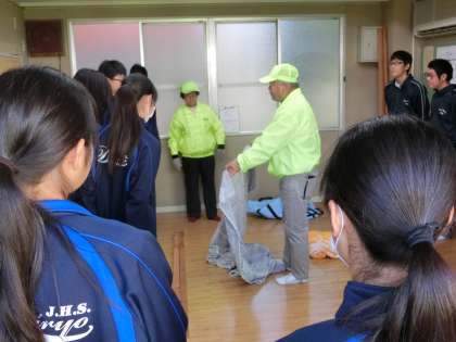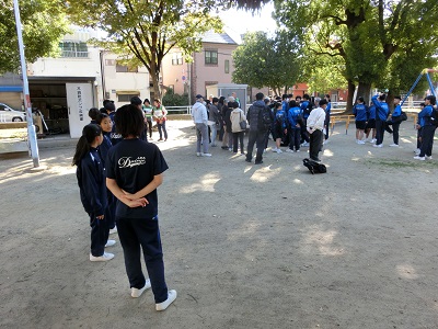 西長居公園では、本校とともに、我孫子中学校も訓練に参加しています。