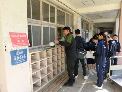 大領小学校でも防災学習が行われ、学校が災害避難所になった場合のシステムを教えていただきました。