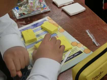 サポートルームでは、分数の学習が行われています。
