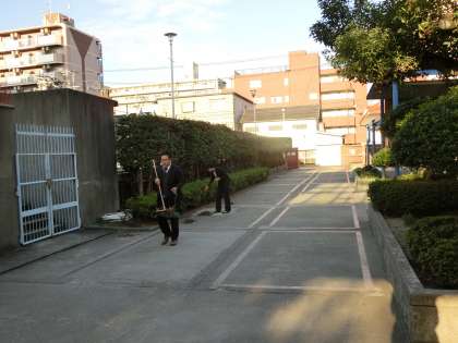 生徒たちが登校するまでに、キレイに掃除を。感謝!