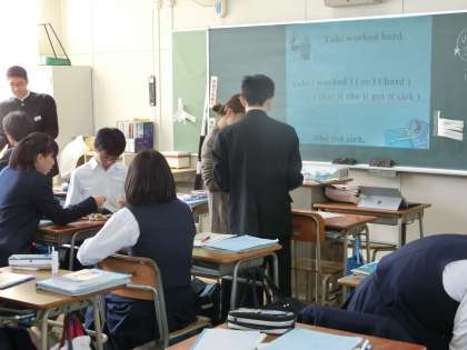 グループワークで、文法を確認し、日本語訳をゲーム形式で解答して行きます。