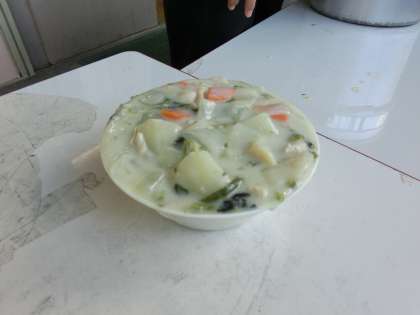 じゃがいもやホタテ、鶏肉、玉ねぎ、ほうれん草、にんじんなど、てんこ盛り!