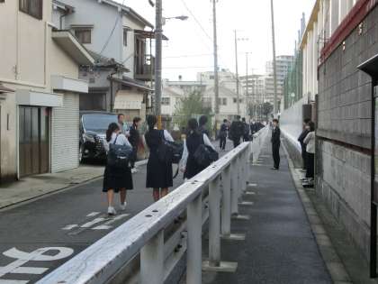 少し寒い中、児童さん、生徒たちが登校してきました。