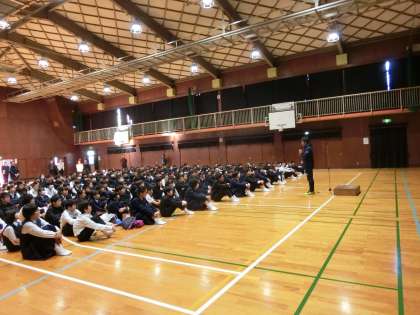 金曜日ですが、臨時で全校集会を実施しました。