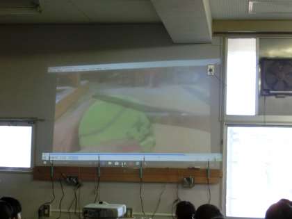 作業の手順を、プロジェクターを活用して説明しています。