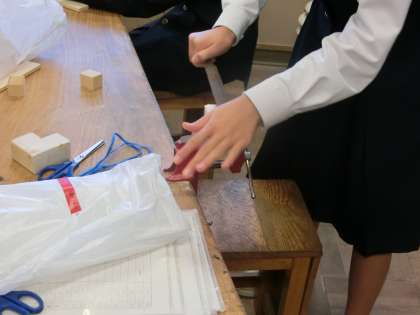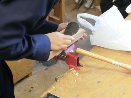 のこぎり、カンナ、棒ヤスリなどを用いて、作業をすすめています。
