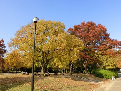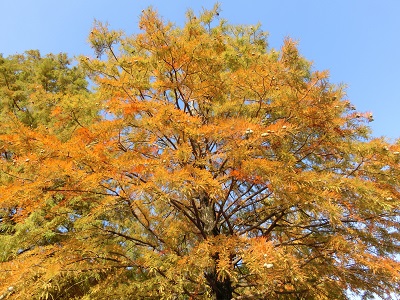 青空をバックに、秋の色が映えています。