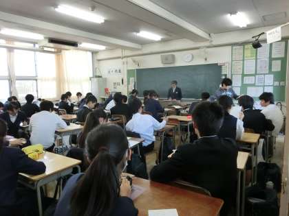 放課後の生徒議会に向けて、学級で意見を出し合っています。