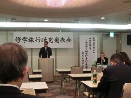 昨日、大阪府公立中学校長会の修学旅行研究発表会が行われ、東生野中学校の三年間の取り組みをお聞きしました。