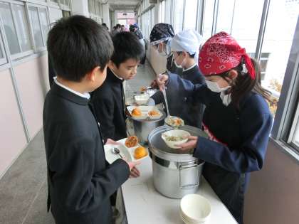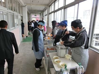 午前中の授業が終了し、給食の配膳時間となりました。