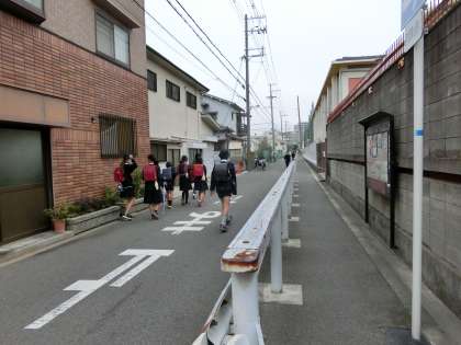 雲が広がり、太陽はなかなか輝きませんが、子どもたちは元気に登校しています。