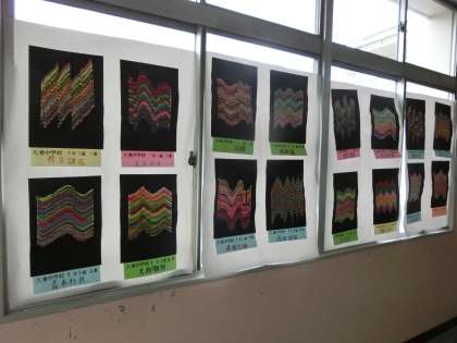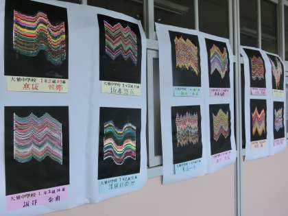 3階の多目的室前に、1年生の美術作品が展示されました。