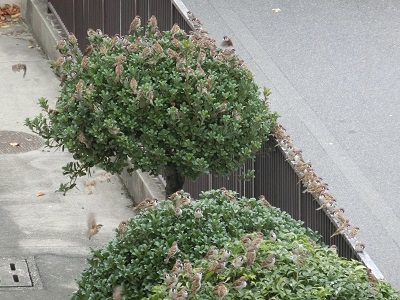 学校の木々や柵にとまって、合唱です。